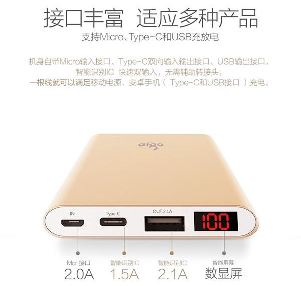 愛國者(aigo)推出首款Type-C接口移動(dòng)電源